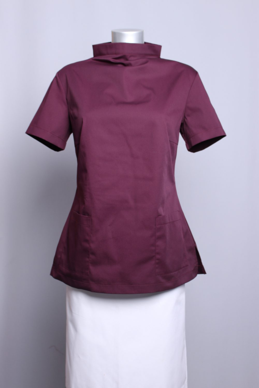 Innovative design for work clothes – neck collar, zipper on back, two pockets, short sleeves. Materials wear-friendly, up to 2% shrinkage.