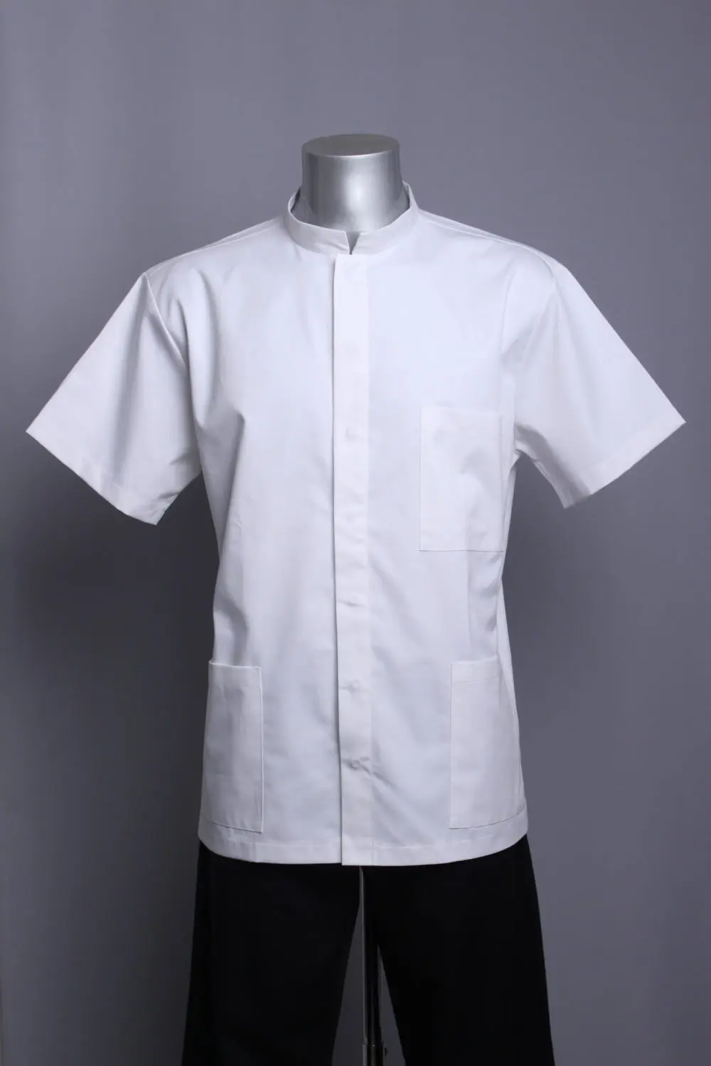 Centralno kopčanje skrivenim drukerima, ruska kragna, lagano strukirana ušicima na leđima, tri džepa, kratki rukavi. Materijal ugodan za nošenje, lako održavanje, skupljanje do 2% u širinu i duljinu.